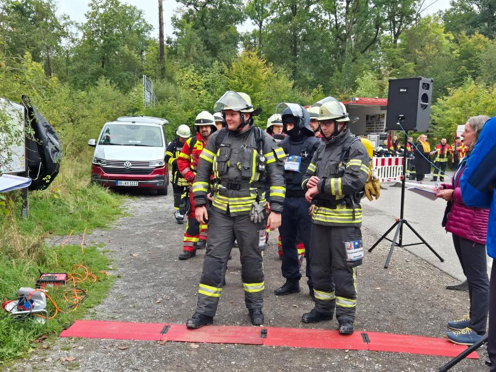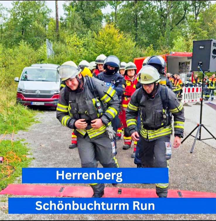 Sportlich unterwegs waren zwei Kameraden der Feuerwehr Gerlingen am 27. September in Herrenberg. In voller Einsatzkleidung und mit geschultertem Atemschutzgerät ging es über eine Strecke von 700m und ca. 60 Höhenmetern und über 174 Stufen den Schönbuchturm hinauf.
