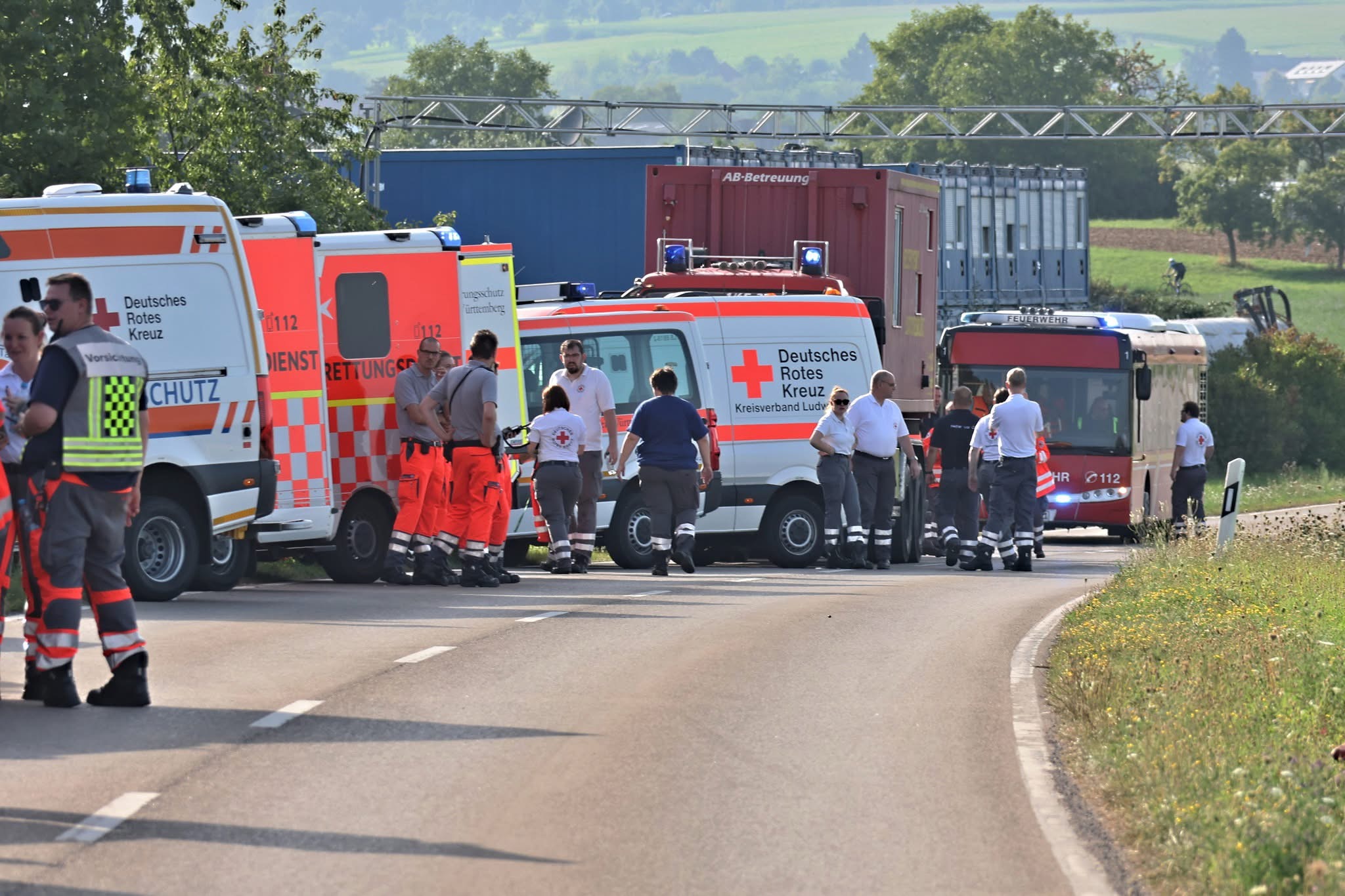 Die Feuerwehr sicherte die Betroffenen und fuhr sie mit Mannschaftstransportwägen und einem Feuerwehrbus des Landkreis Ludwigsburg zur Sammelstelle in die Unterkunft des THW Leonberg, wo sie durch den Rettungsdienst registriert, medizinisch gesichtet und betreut wurden. Verletzt wurde bei dem Einsatz glücklicherweise niemand.